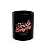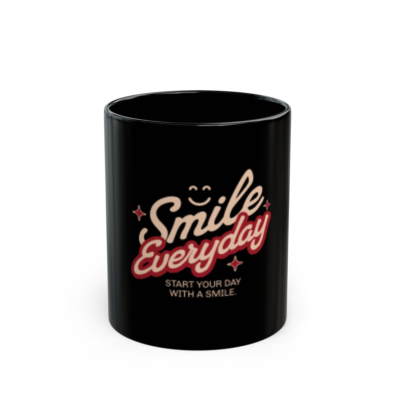 A glossy black ceramic mug that brightens the morning with a cheerful “Smile Everyday” design in warm cream and coral tones. The compact 11oz or roomy 15oz profile feels familiar in the hand, while the C-shaped handle gives secure, everyday comfort. Colors stay crisp and vibrant thanks to modern printing, and the mug stands up to daily life — microwave and dishwasher safe, lead- and BPA-free. This piece adds a gentle, optimistic touch to kitchen routines, desk breaks, and slow weekend mornings when a small reminder to breathe and grin matters most.